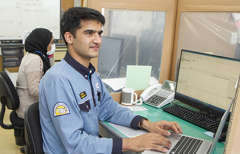 20歳で来日し、日本語学校とITの専門学校で学んだ後に入社しました。社員が使う約160台のパソコン管理やトラブル対応、アルコールチェッカーなど社用機器の管理をしています。また、要望に応じてシステムの構築も担っています。